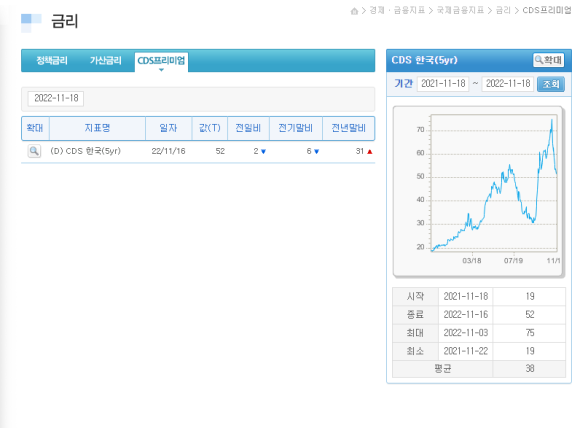 CDS 프리미엄은 얼마인지 알아봤습니다.