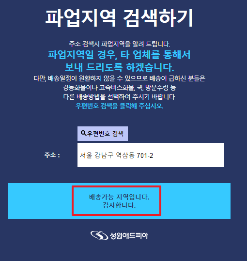 2. CJ택배 파업지역 검색 바로하기