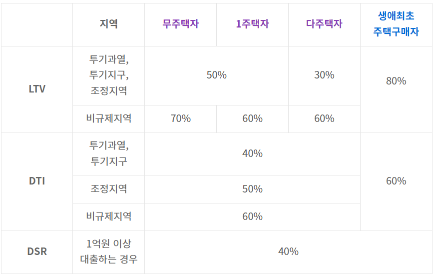 대출에 대한 규제정책 또는 완화정책이 나올때마다 거론되는 용어들이 있는데요. 바로 DSR, DTI, LTV 입니다.